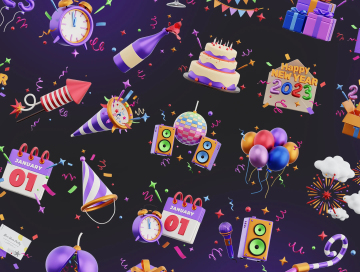 图穷联素材库 » 三维渲染2023年新年庆祝派对晚会装饰设计3D插画素材 Ne
