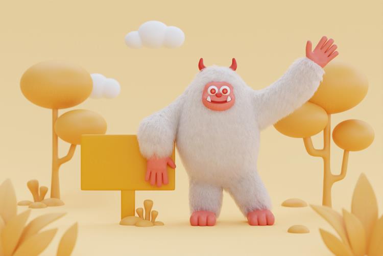 图穷联素材库 » 高质量三维渲染憨态可掬的卡通雪人Yeti高清背景图片素材