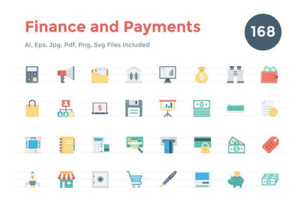 图穷联素材库 » 金融矢量图标素材 150 Flat Finance and Payments
