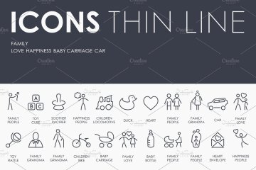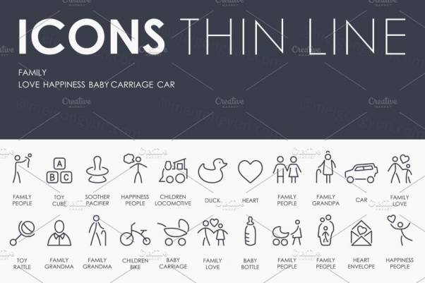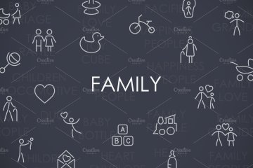 图穷联素材库 » 家庭主题图标素材 Family thinline icons