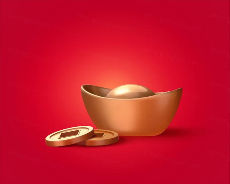 图穷联素材库 » 2023年农历新年玉兔迎新春传统东方中国风金元宝装饰元素EP