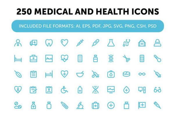 图穷联素材库 » 250个医学和健康图标下载 250 Medical and Health Ico