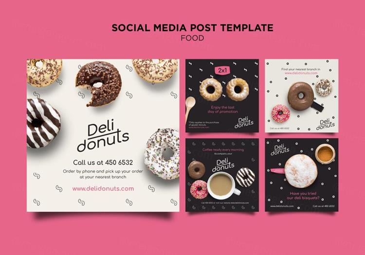 图穷联素材库 » 美味甜甜圈咖啡店快餐店正方形单页传单海报设计PSD模板素材
