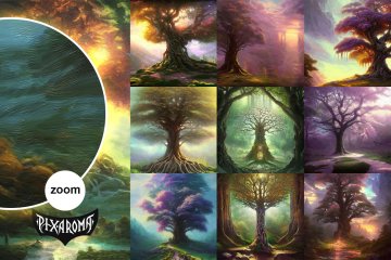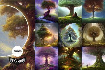 想象自己站在一棵古树最高的树枝顶端,从高处眺望世界。或者在茂密的森林中心,感受寂静。或者凝视广阔的田野,注意每一片草叶。用这些梦幻树探索您的想象力。