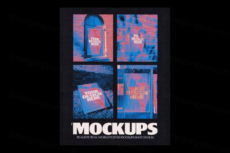 7 Mockups -在电影中拍摄的逼真的海报模型