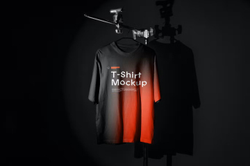 ** 黑暗和喜怒无常的环境中的超大号 T 恤模型,带有时尚的霓虹灯元素。使用它们创建突出的品牌展示或网站标题、Instagram、Facebook 和 Behance 项目。
