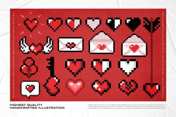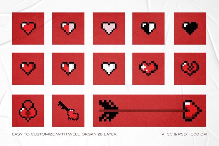 图穷联素材库 » 高质量创意像素风爱心天使七夕情人节爱情主题图标插画 Pixe