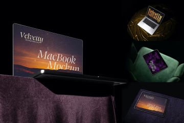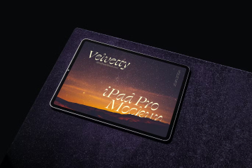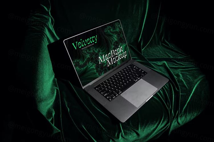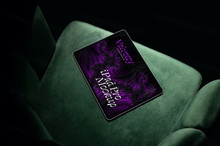 5 PSD iPad 和 MacBook Pro 模型文件,在黑暗和喜怒无常的环境中使用皇家天鹅绒面料和青铜复古元素。