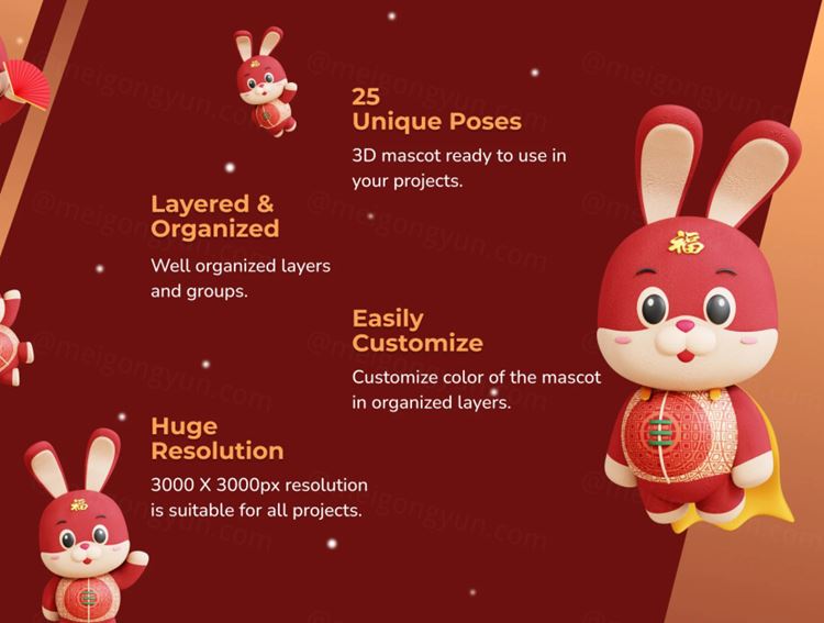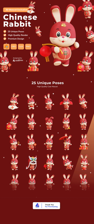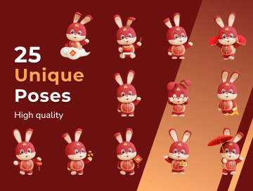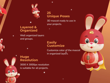 3D Chinese Rabbit Mascot 是一组独家吉祥物角色,可用于设计需求、动画、网页设计、UI 设计、演示幻灯片、海报等。