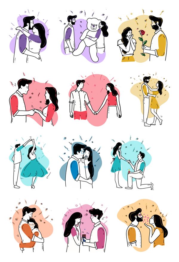 图穷联素材库 » 扁平化情侣男女情人节爱情主题人物矢量插画素材合辑 Valen
