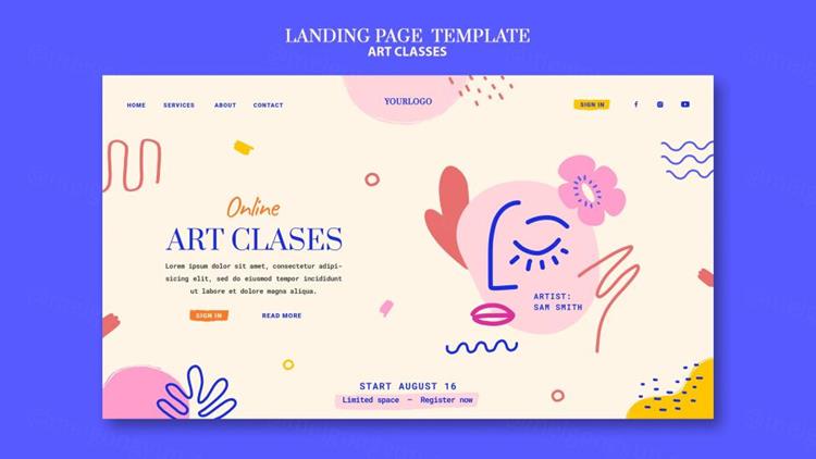 图穷联素材库 » 儿童稚嫩可爱手绘涂鸦几何艺术课堂培训班网页落地页宣传海报横幅