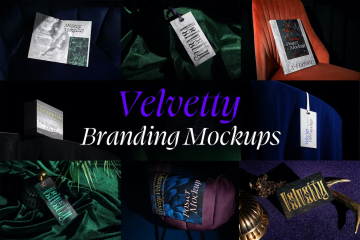 8 个 PSD 品牌模型文件,在黑暗和喜怒无常的环境中使用皇家天鹅绒面料和青铜复古元素,包括:小册子、海报、名片、标签和包装物品。