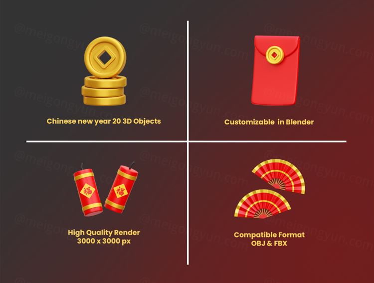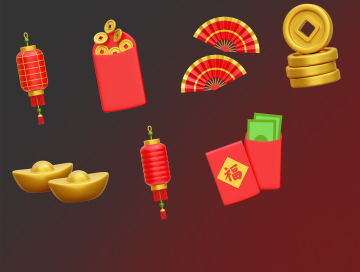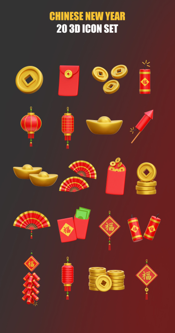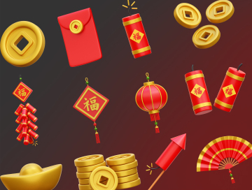 图穷联素材库 » 中国传统农历新年主题元素图标3D插画素材 Chinese N