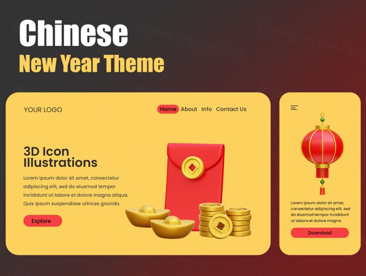 中国传统农历新年主题元素图标3D插画素材 Chinese N