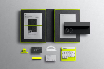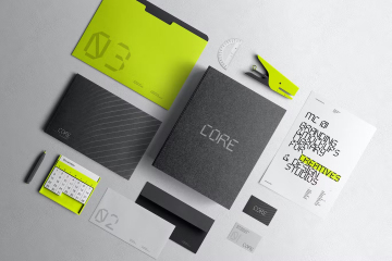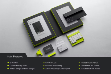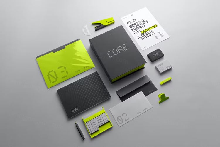 图穷联素材库 » 企业办公文具高端品牌VI设计贴图展示样机PSD模板 Core
