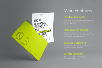 图穷联素材库 » 企业办公文具高端品牌VI设计贴图展示样机PSD模板 Core