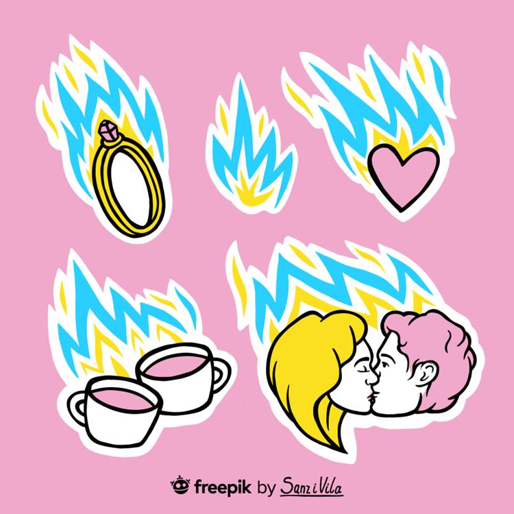 图穷联素材库 » 高质量婚礼钻戒爱心情侣亲吻情人节七夕爱情主题创意贴纸元素EP