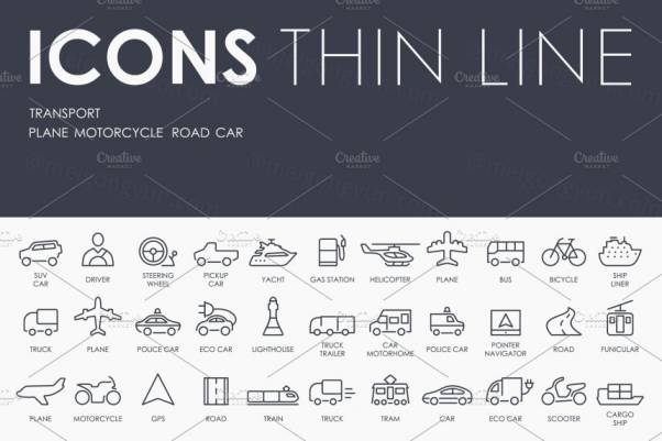图穷联素材库 » 交通图标素材 Transport thinline icons