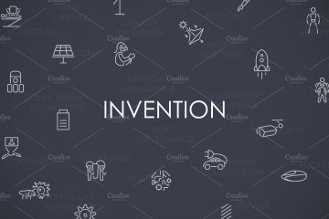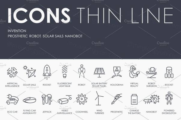 图穷联素材库 » 发明创造矢量图标下载 Invention thinline icons
