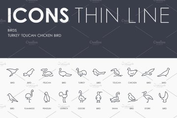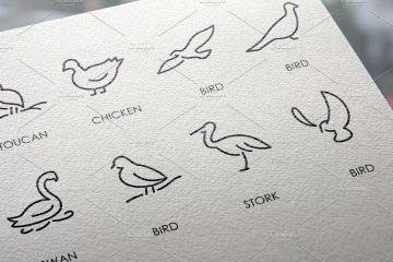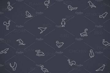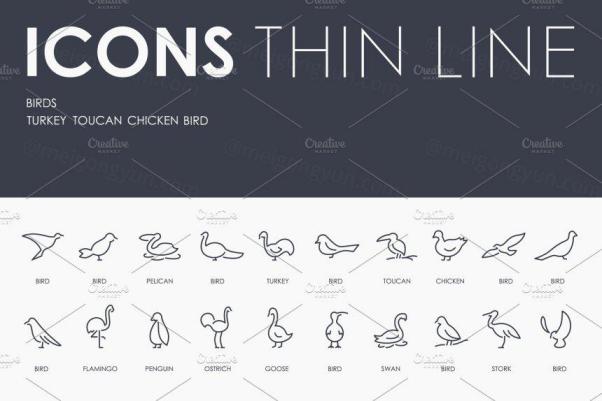 图穷联素材库 » 鸟类矢量图标素材 Birds thinline icons