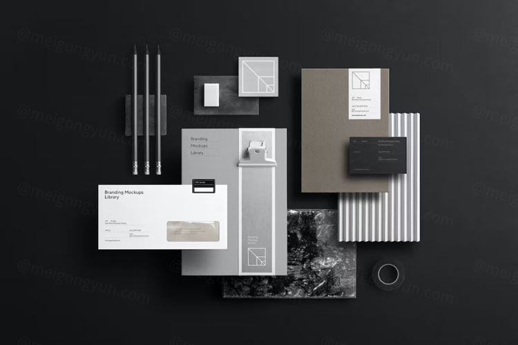 图穷联素材库 » 企业办公文具高端品牌VI设计贴图展示样机PSD模板 Bran