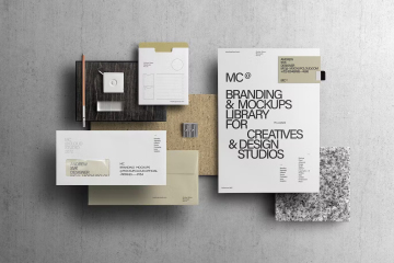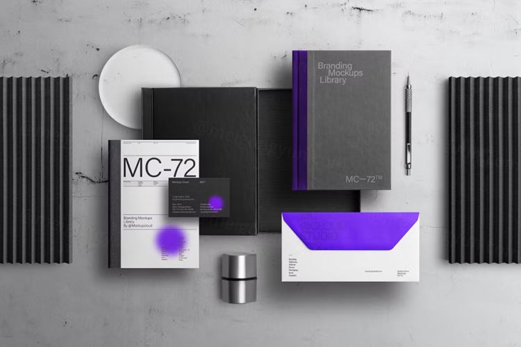 图穷联素材库 » 企业办公文具高端品牌VI设计贴图展示样机PSD模板 Bran