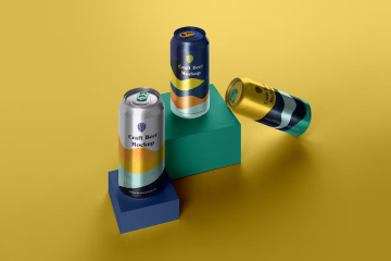 图穷联素材库 » 高质量啤酒饮料品牌包装设计贴图展示样机PSD模板 Craft