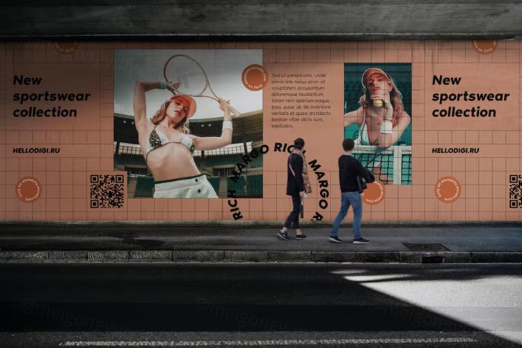 图穷联素材库 » 户外墙体宣传印刷广告贴图展示样机PSD模板 Street B