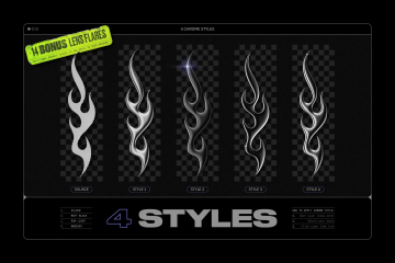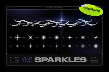 此外,此包还为您提供了 120 种预制抽象铬合金形状和 14 种火花和镜头光晕的多种选择,可为您的作品增添细节。由于每个元素都与其背景隔离,因此您可以从这个庞大的库中挑选并选择,并将您选择的奖励图形拖放到您的项目中。