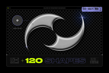 120个预制抽象铬形状(透明背景的PNG文件,3000×3000px)