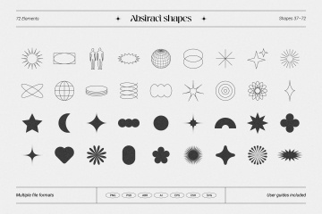 CSH 文件——只需单击一下,即可在 Adobe Photoshop 自定义形状面板中导入包含 72 个抽象形状的库。