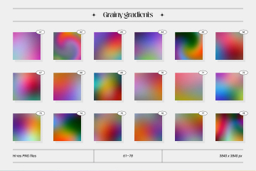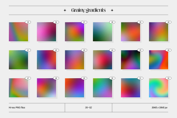 探索Grainy gradients 系列,这是模糊的彩色背景、艺术纹理和简约符号的超现实主义混合体。它包含 72 个随时可用的抽象矢量形状和 78 个充满活力的艺术背景,具有完美的颗粒纹理。
