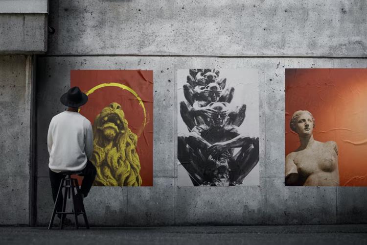 图穷联素材库 » 户外街头邹巴巴的墙体宣传印刷广告贴图展示样机PSD模板 Wa