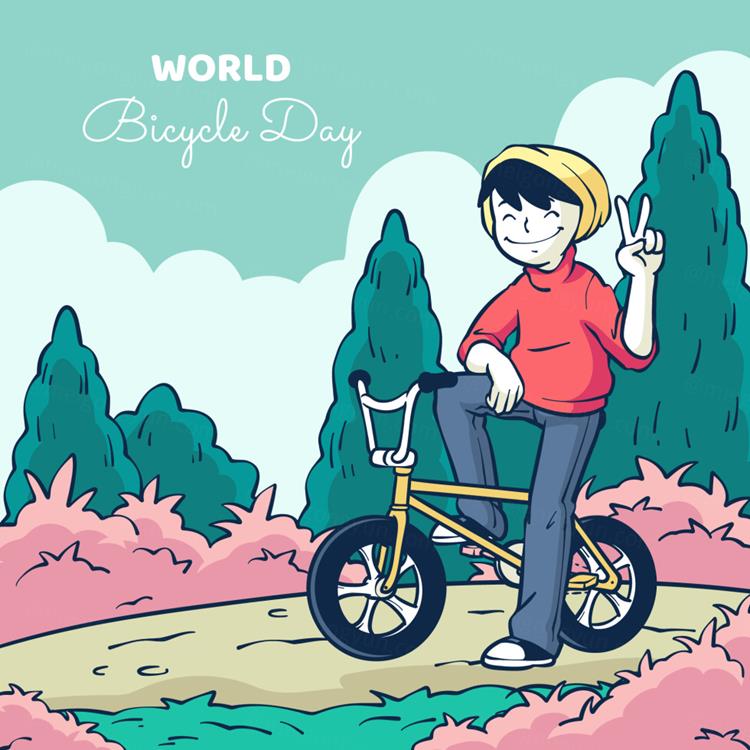 手绘世界自行车日春天外出踏青骑行人物风景插画EPS矢量设计素