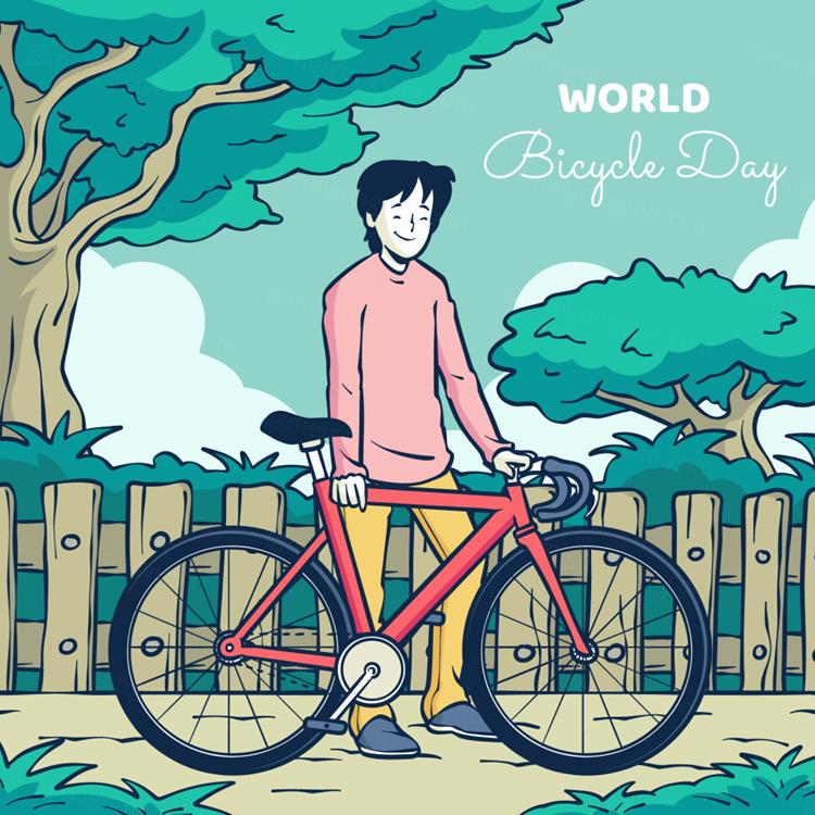 手绘世界自行车日春天外出踏青骑行人物风景插画EPS矢量设计素