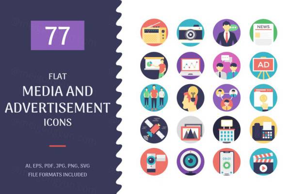 图穷联素材库 » 媒体和广告平面图标下载 Media and Advertisement Flat