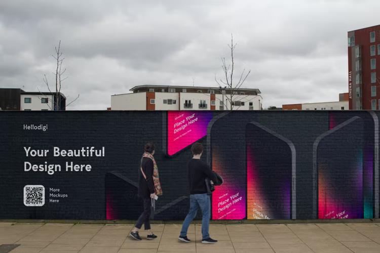 图穷联素材库 » 户外街头墙体宣传印刷广告贴图展示样机PSD模板 Mural