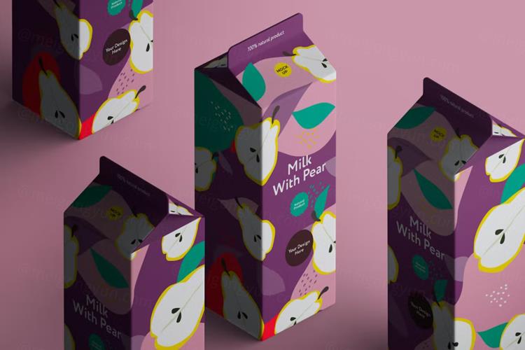 水果牛奶果汁饮料品牌包装设计样机PSD模板 Isometri
