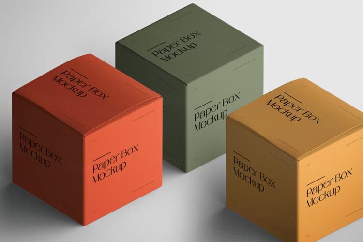高质量正方形纸盒包装设计贴图展示样机模板 Isometric