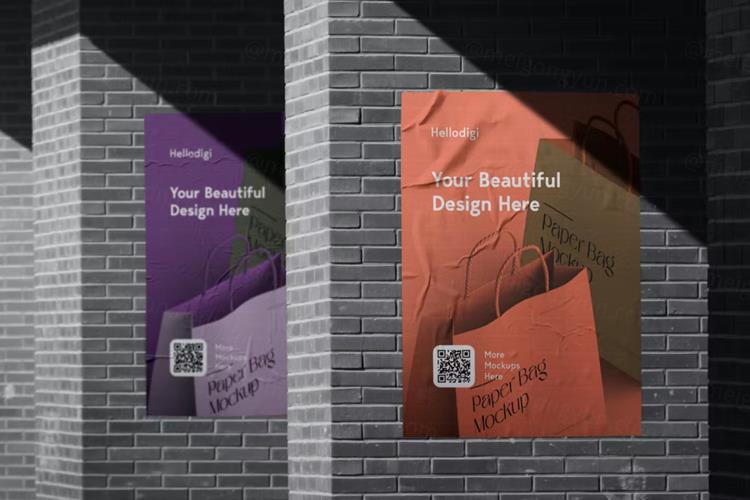 图穷联素材库 » 户外皱巴巴的宣传单海报广告设计贴图展示样机PSD模板 Wal