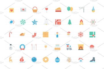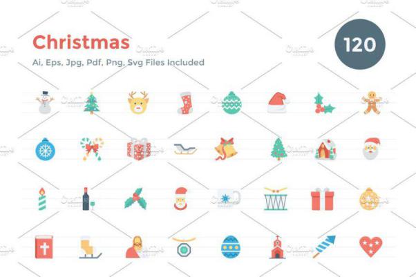 圣诞节元素图标下载 120 Flat Christmas Vector Icon