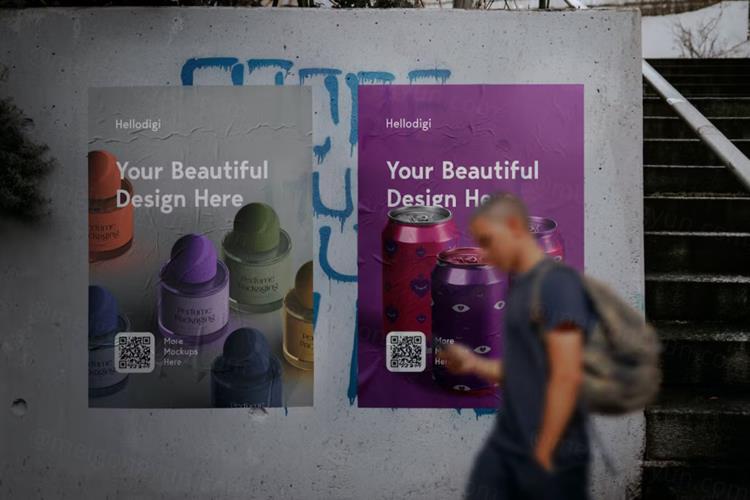 图穷联素材库 » 户外皱巴巴的宣传单海报广告设计贴图展示样机PSD模板 Wal