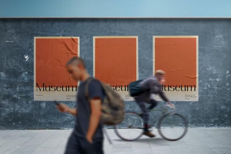 图穷联素材库 » 户外皱巴巴的宣传单海报广告设计贴图展示样机PSD模板 Str