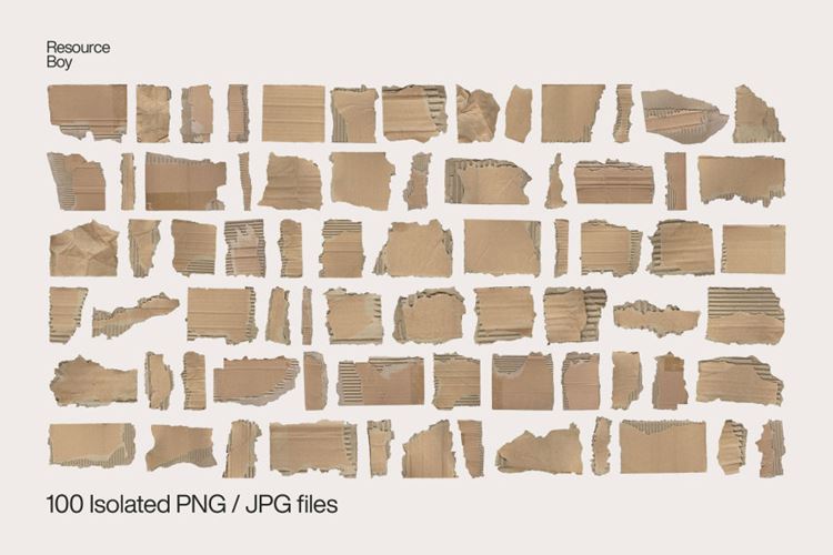 100种瓦楞纸破纸箱撕裂纸板碎片PNG免抠图素材 Torn