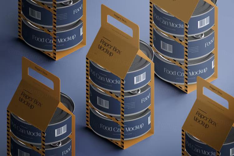 高质量罐头食品包装设计贴图展示样机模板 Isometric