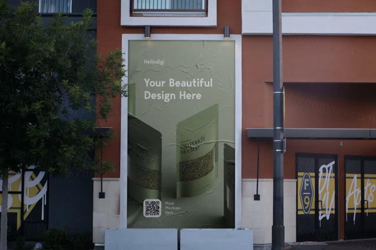 图穷联素材库 » 户外街头广告横幅宣传海报设计贴图展示样机模板 Street
