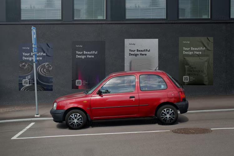 户外街头停车位宣传印刷广告贴图展示样机PSD模板 Wall