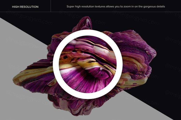 15 种充满活力的抽象 3D 纹理,以及 Photoshop 笔刷。