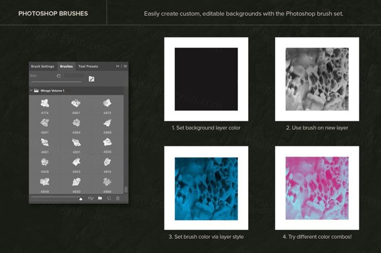Photoshop 笔刷提供了更大的灵活性,可以使用自定义颜色、渐变等创建您自己的纹理背景。