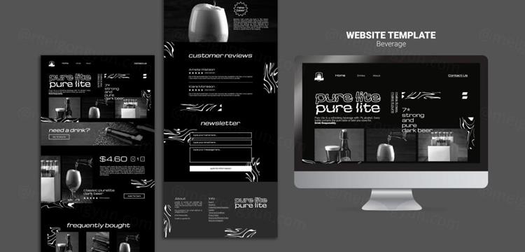 图穷联素材库 » 潮流酸性暗黑风酒吧KTV饮料酒水H5网页宣传PSD模板 De